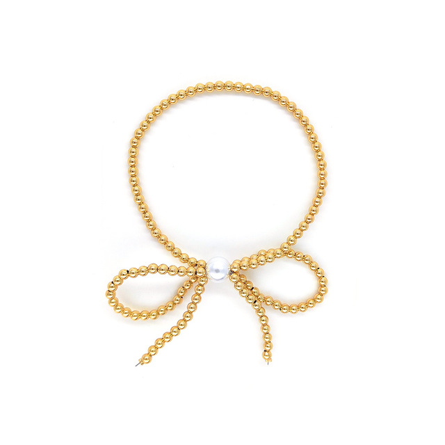 Kadınlar için inci boncuk altın kaplama yay bilezik ile moda alaşım boncuk